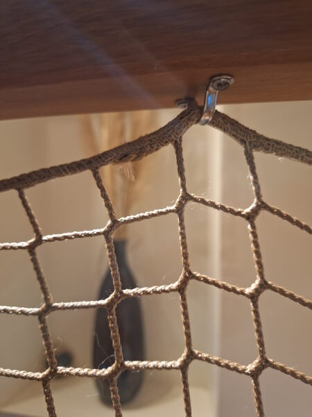 Vous pouvez également accrocher en premier les pontets, puis utiliser de la corde d'attache pour ligaturer le pourtour du filet tout en la passant au fur et à mesure dans les pontets.