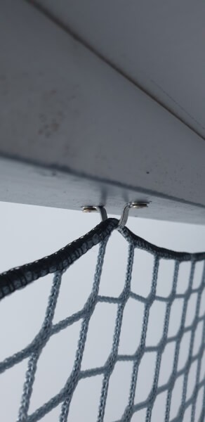 Pour fixer un filet, il suffit de passer directement le pourtour du filet dans le pontet, puis de le fixer sur le support avec la visserie adéquate (non fournies). Veillez à utiliser des vis et des chevilles adaptées à votre support.