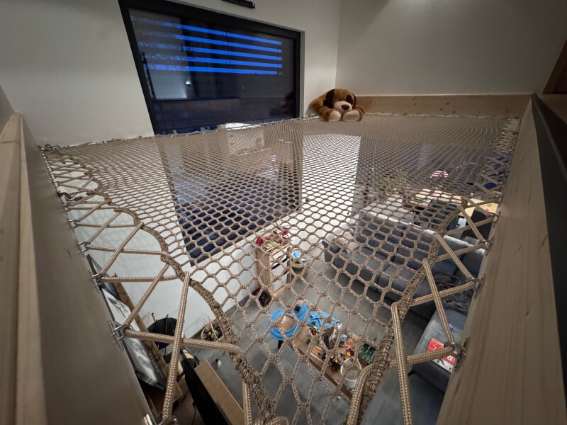 Pour fixer un filet, vous pouvez au choix utiliser de la corde d'attache, ou un du câble pour ligaturer le pourtour du filet tout en la passant au fur et à mesure dans les pontets. Vous pouvez également accrocher le filet aux pontets avec des mousquetons ou des maillons rapides, au choix et selon votre contexte.