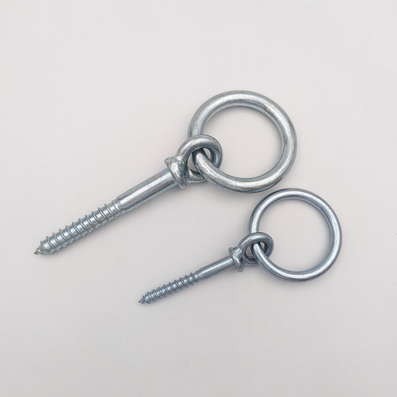 Anneau d'écurie à vis à bois en acier zingué blanc, adapté pour la fixation un câble, une chaîne ou une corde.