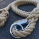 Corde lisse en chanvre synthétique en polypropylène texturé avec anneau, adaptée pour une utilisation d'extérieur comme d'intérieur, à installer dans son jardin, dans un salon ou dans une salle de sport.