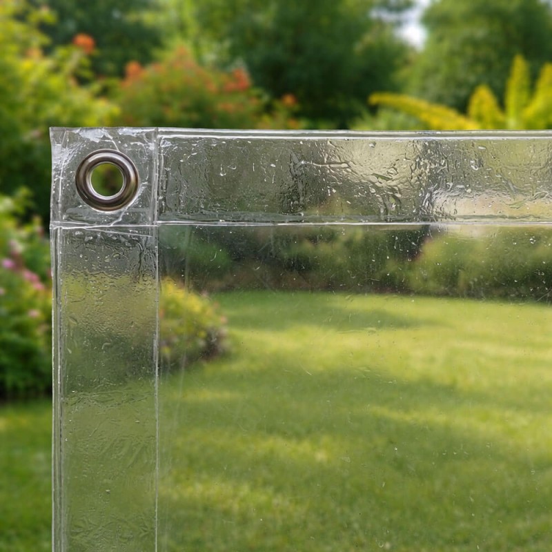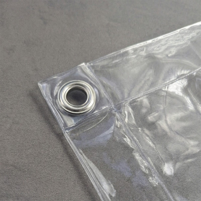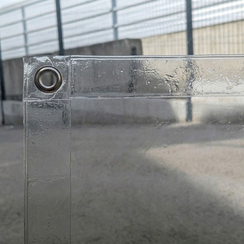 Bâche PVC souple 650 g/m² transparente. L'ourlet PVC en bordure avec œillets inox facilite la pose et assure une fixation solide. Résistante à l'humidité et au froid.