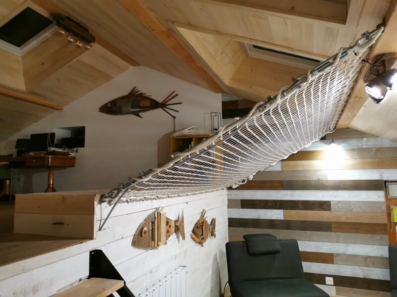 Ce câble est utilisable pour fixer sur un côté, dans le vide, un filet de mezzanine.