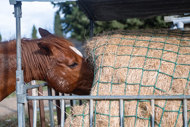 Nos filets à foin pour chevaux sont également disponibles dans d'autres formes (sac, balles rondes et carrées).