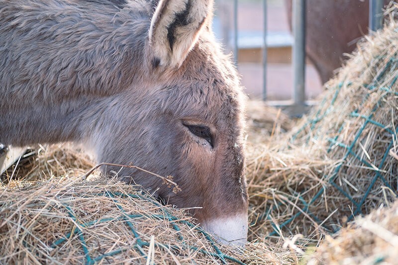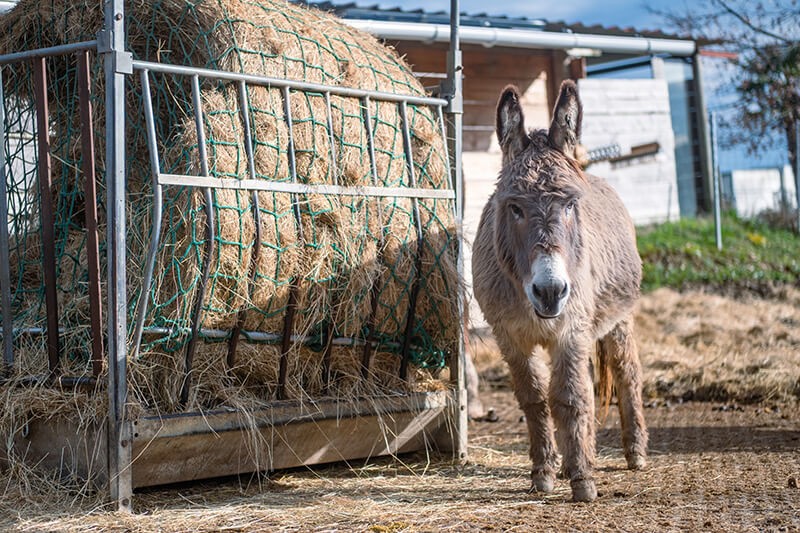 Ses deux fonctions vont permettre, à la fois, de ne pas gaspiller de foin, bien tenu par le filet mais aussi d'inciter le cheval à manger plus lentement.