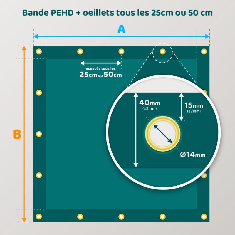 Ce modèle de filet est fabriqué sur mesure dans des ateliers en France, il est réalisé en polyéthylène blanc, très robuste, imputrescible et traité anti UV, destiné à une utilisation extérieure.