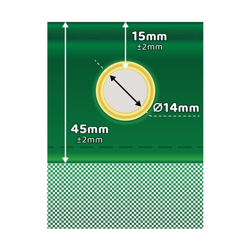 | Finition | brut / cordage / bande PVC avec oeillets |