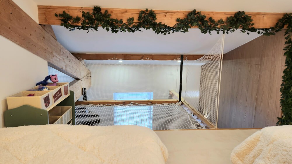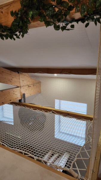 Ce modèle de filet est également parfaitement utilisable comme filet d'habitation, aussi appelé filet mezzanine, qui se pose horizontalement pour combler un vide afin de créer une zone de jeu, de détente pour le plus grand bonheur des petits comme des plus grands, en toute sécurité. Ce type de filet est particulier recommandé pour des utilisations intensives