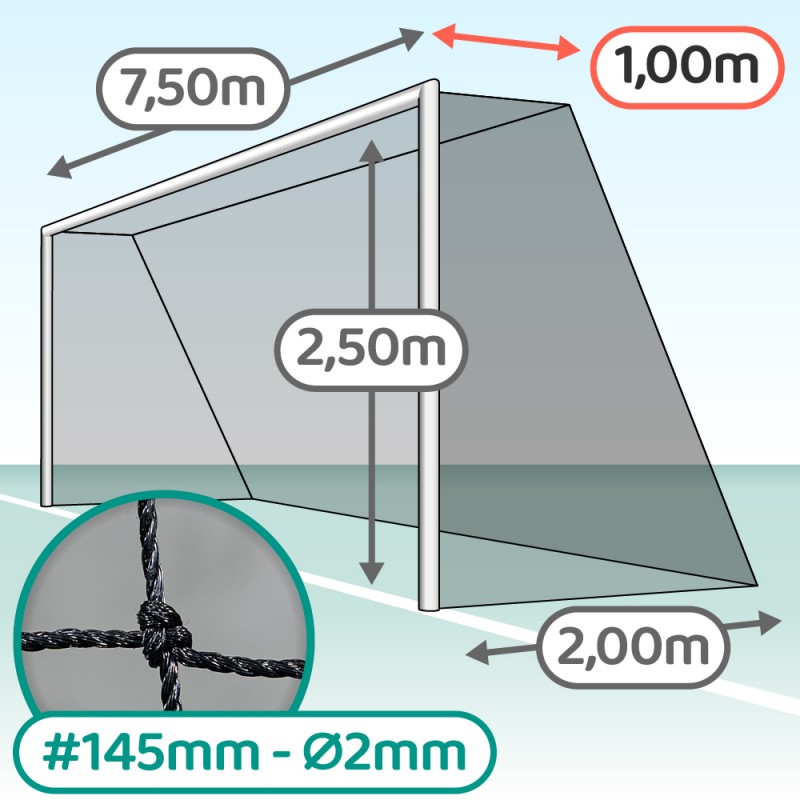 Paire de filets de but trapézoïdal foot à 11 Mailles 145 x 145 mm - ∅ 2 mm