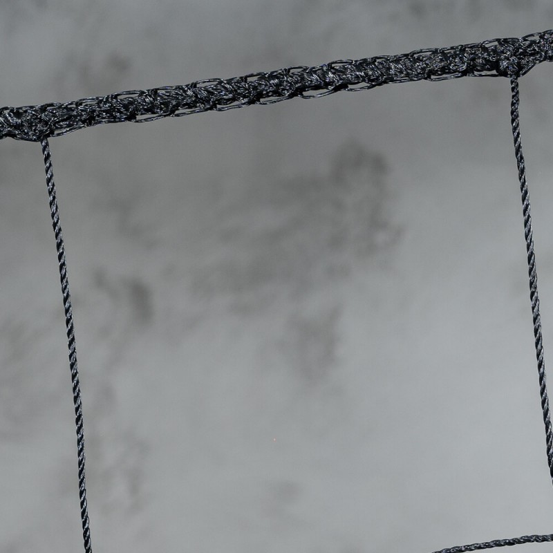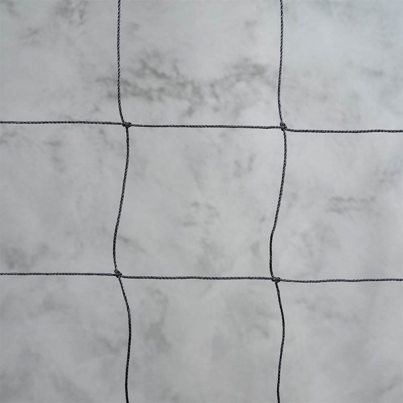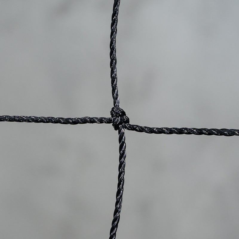 Filet pour but de football sénior en fil polyéthylène câblé noué de 2 mm de couleur noire. Mailles carrées de 145 x 145 mm.