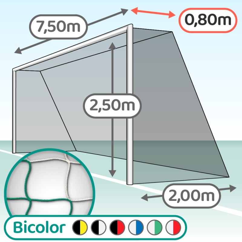 Paire de filets de but trapézoïdal foot à 11 Mailles 120 x 120 mm - ∅ 4 mm - bi-couleur