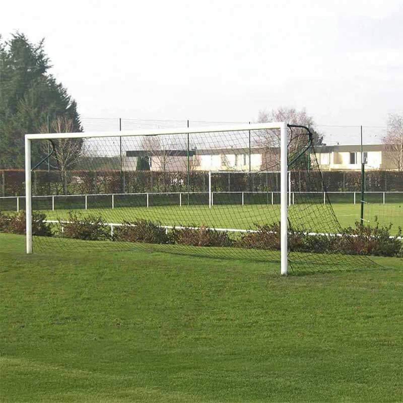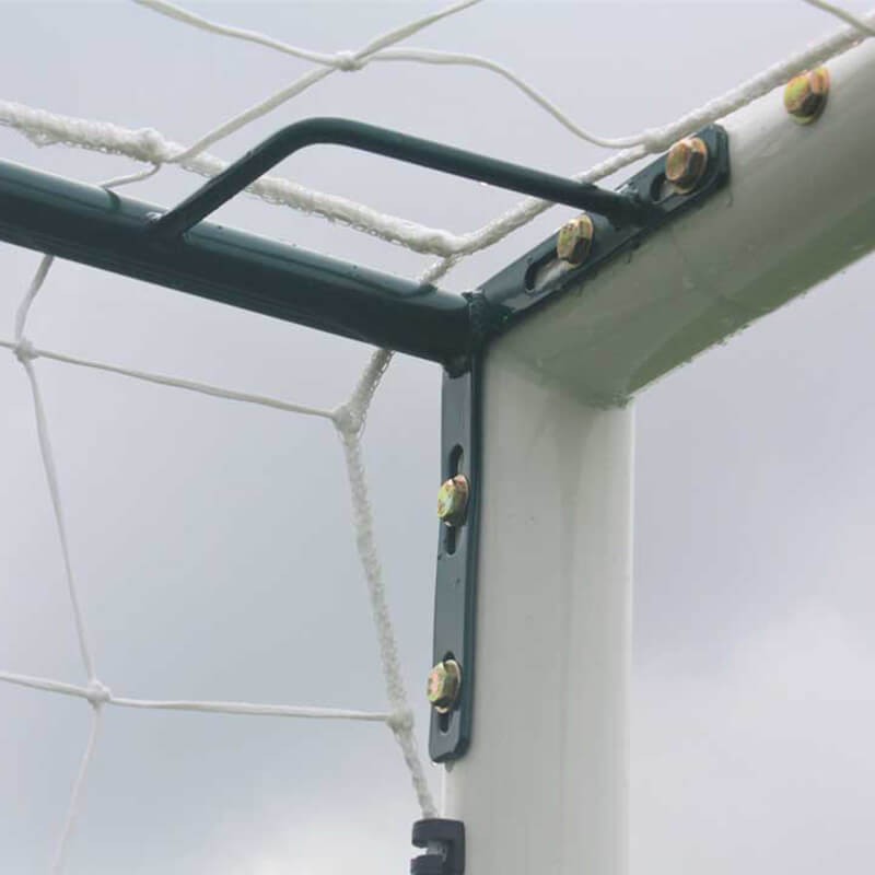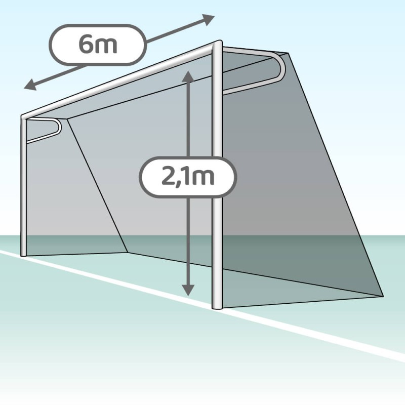 Les dimensions réglementaires de 6 mètres de large sur 2,1 mètres de haut respectent les normes en vigueur pour le foot à 7 et à 8. Ce modèle est équipé de retours d’angle soudés directement sur les montants, offrant une solidité renforcée et une meilleure stabilité à l’ensemble. Les oreilles disposent d'un déport de 80 cm, conformes à la norme EN 748, assurant une fixation sécurisée du filet.