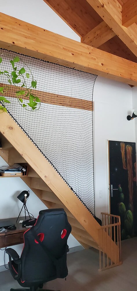 Il conviendra également pour prévenir les chutes de jouets et objets, même les plus petits, pour sécuriser efficacement une pièce, des barreaux, un parc, un balcon, un escalier, etc...