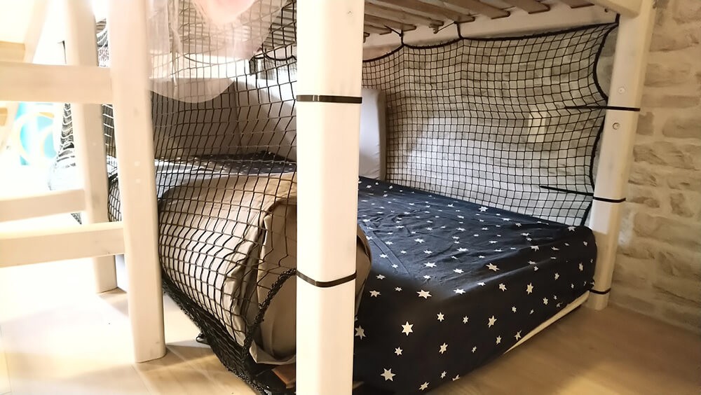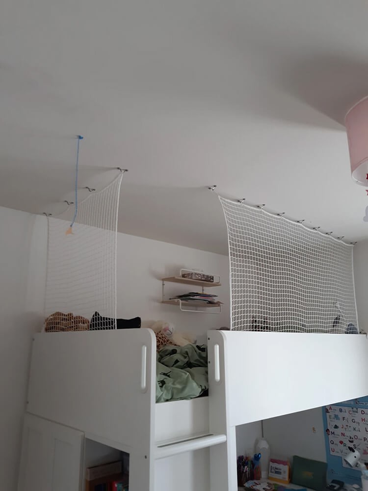 Les très petites mailles empêchent les enfants de pouvoir grimper dessus et passer leurs bras et jambes à travers.
