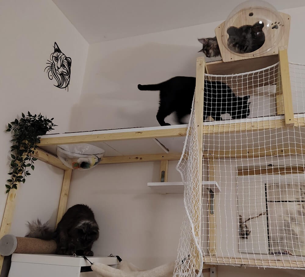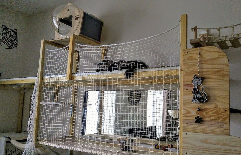 Vous êtes bricoleur ? Créez un catio. Imaginez un espace sur votre balcon/terrasse totalement dédié à votre chat en réalisant une structure en bois ou en métal et y ajouter des filets de protection sur mesure.
