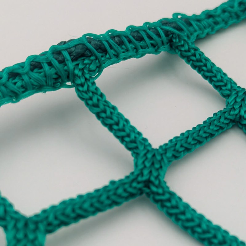 Une ralingue de renfort en polypropylène de 4 mm est cousue tout au pourtour du filet sur les 4 côtés.