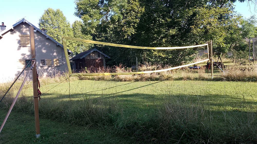 - Tension du filet avec 2 cordes de 12,2 mètres disposées en haut et en bas du filet