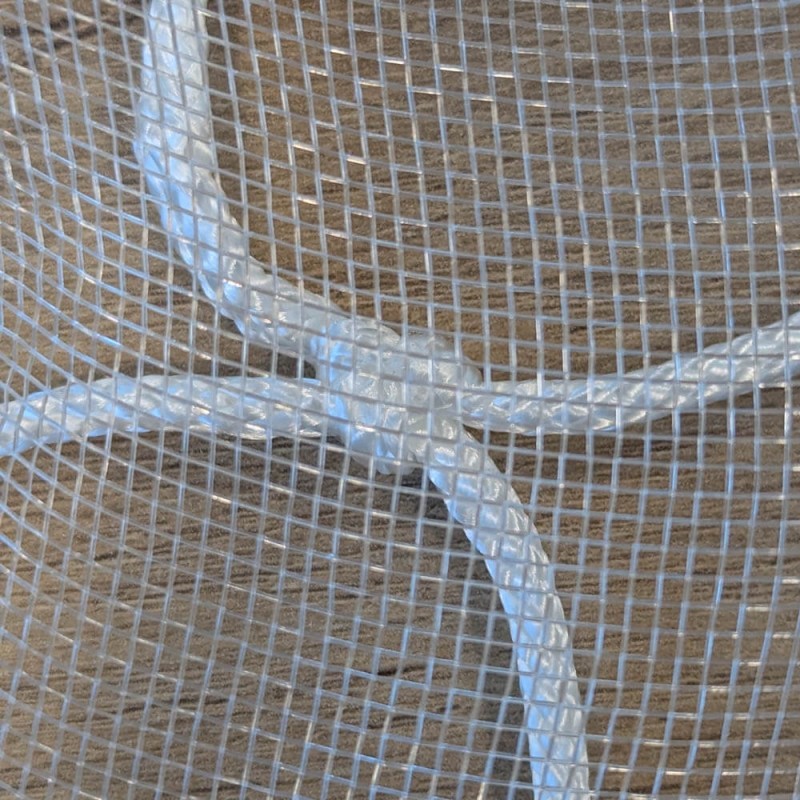 Ce filet est équipé d'une ralingue en polypropylène blanc de 8 mm de diamètre, entièrement cousue au pourtour.