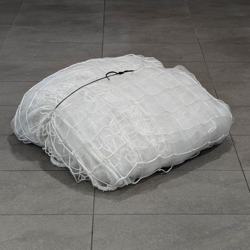 Il est conçu avec des mailles carrées 100 mm Ø 3 mm, en polyamide blanc haute ténacité, et il est équipé d’une ralingue en polypropylène blanc, Ø 8 mm, entièrement cousue au pourtour.
