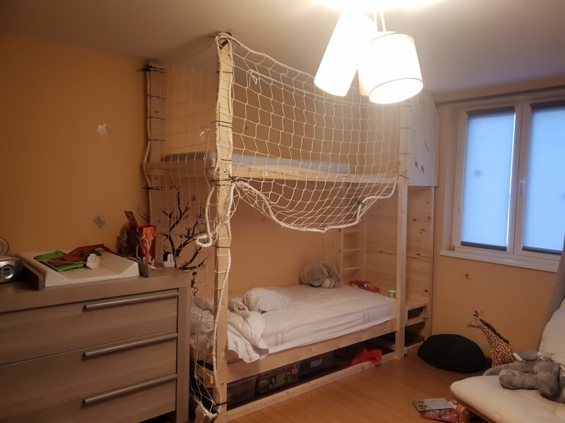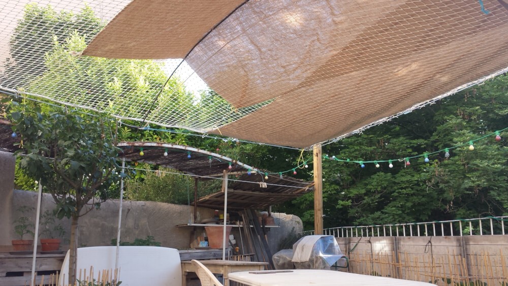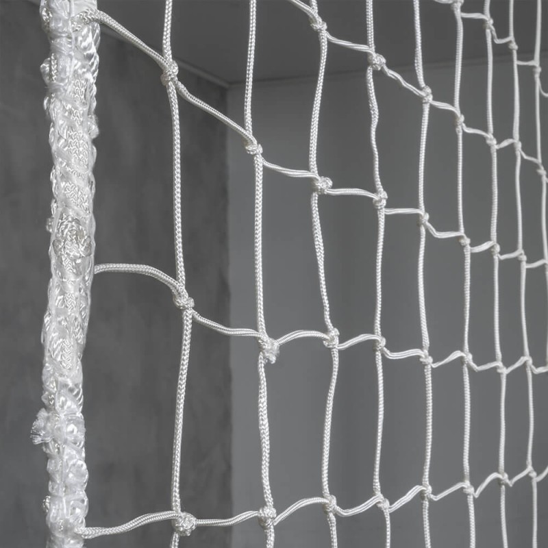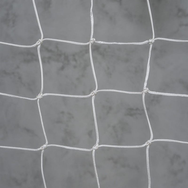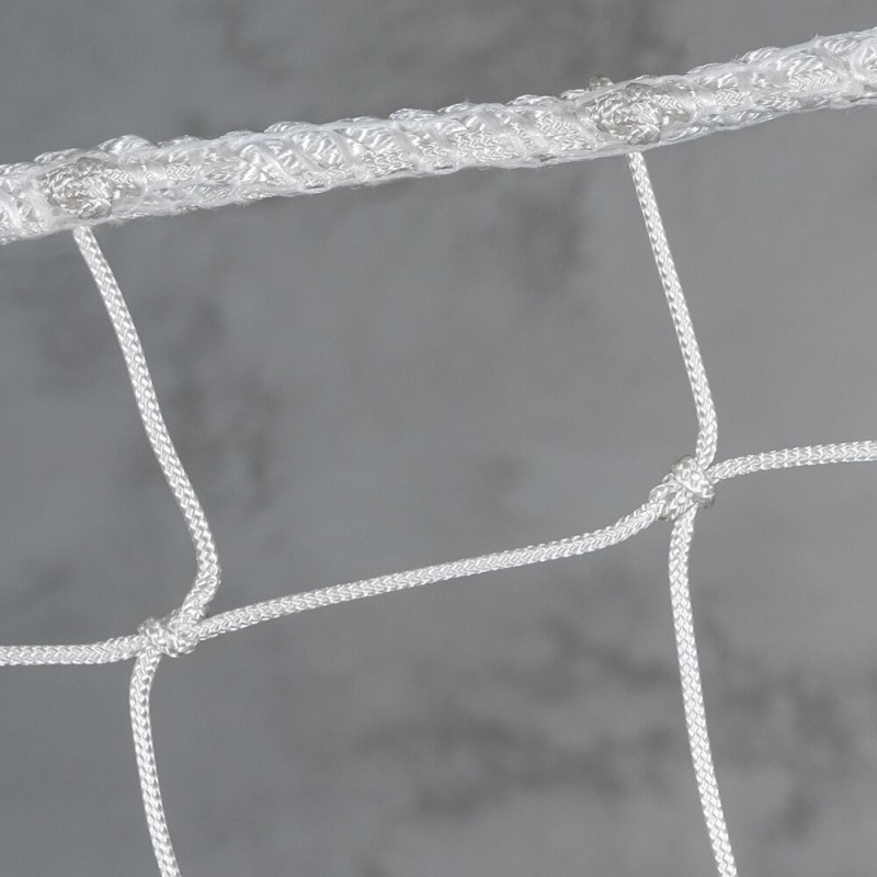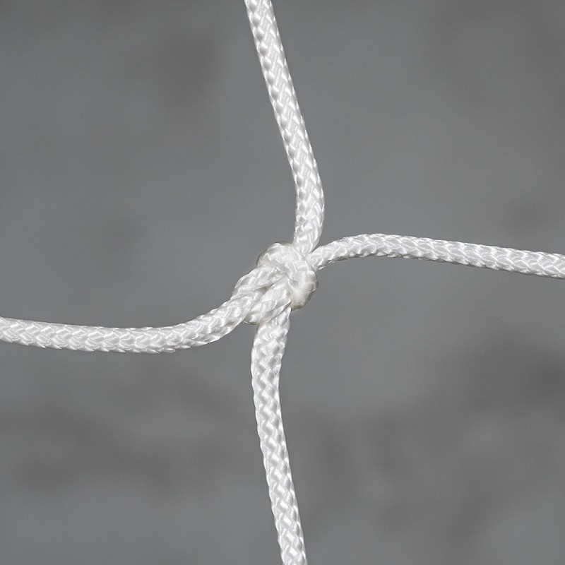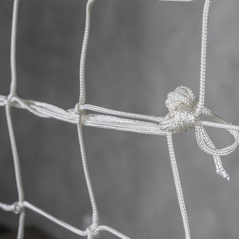Ce filet est équipé d'une ralingue en nylon blanc de 12 mm de diamètre. Elle est passée entre toutes les mailles du filet et entièrement cousue au pourtour. Cette finition est obligatoire conformément à la norme EN 1263-1.
