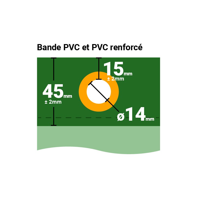 Dans le cadre d'une finition par bande PVC, celle-ci étant plus lourde, et donc plus robuste, permettra d'assurer une durée de vie maximale au filet.
