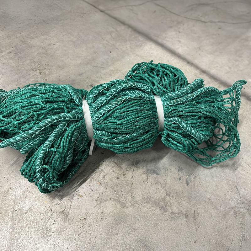 Filet pour bennes en polyéthylène vert qui permet de maintenir tout type de chargement sur un camion ou sur un semi plateau.