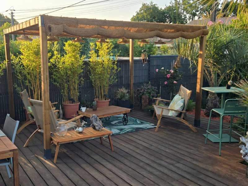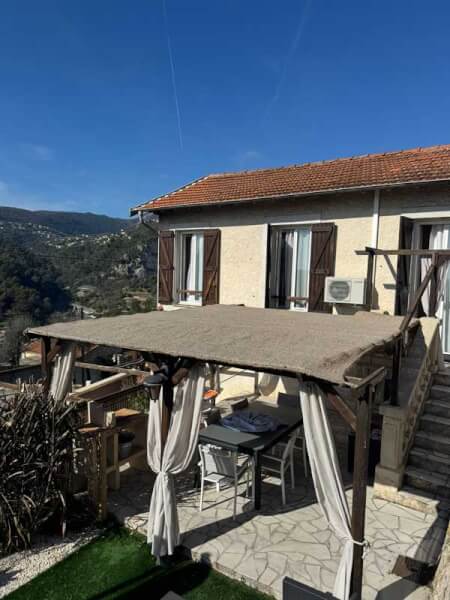 Description : Voici quelques photos de la toile que nous avons posé sur la pergola de l'annexe de notre maison dans le Var. Ça rend super bien !