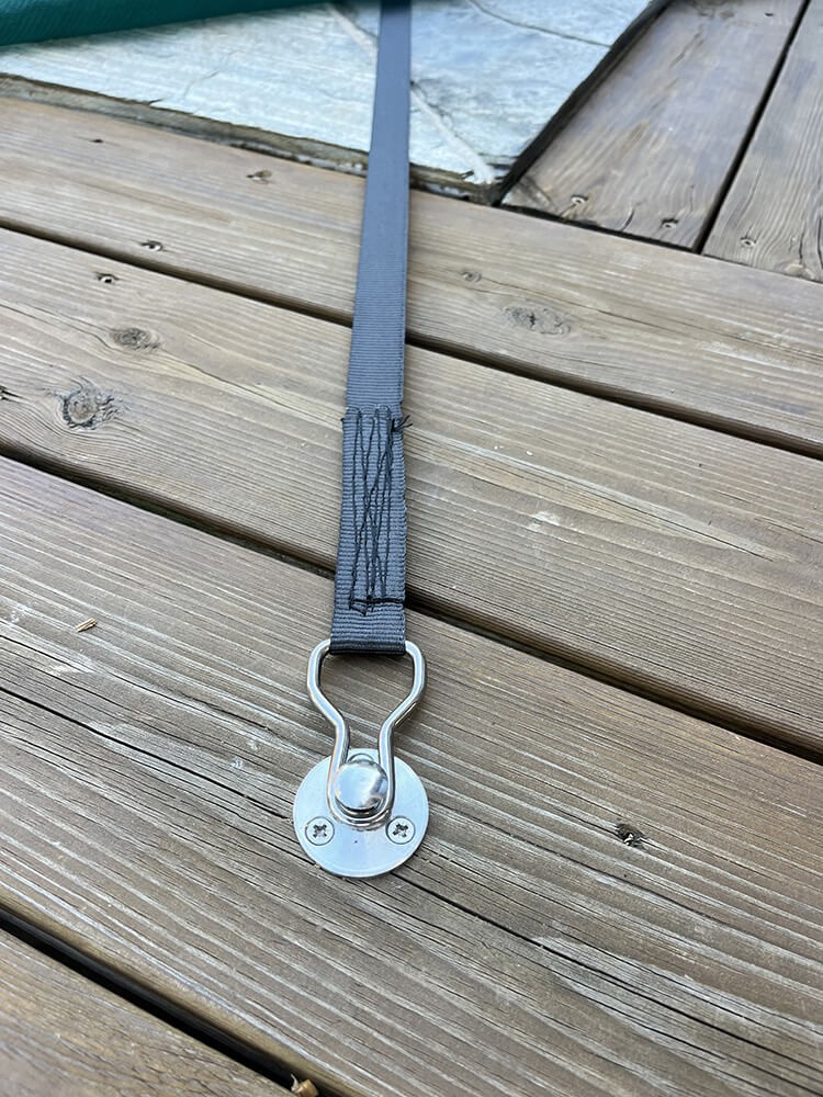 Sangle de maintien pour bâche et filet piscine Cliquet + anneaux inox - Confection sur mesure Sangle de maintien pour filet anti-feuilles