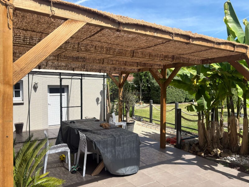 Ombrière dense en coco pour pergola à traverses espacées Ombrage naturel - Poids 1.2 kg/m² - Quadrillage renforcé