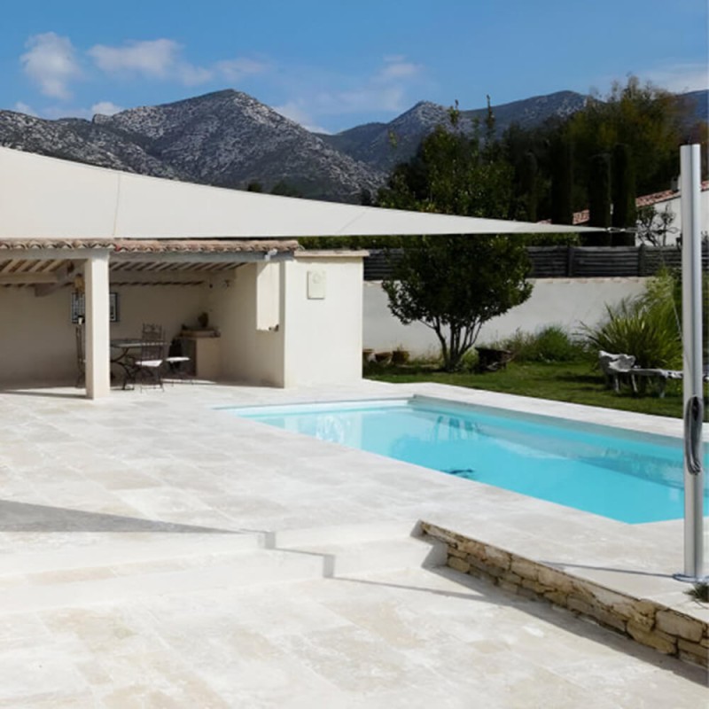 La voile d'ombrage 300 enrouleur allie performance technique et praticité au quotidien. Fabriquée à la commande en atelier, cette toile d'ombrage imperméable en tissu 100 % acrylique de 300 g/m² est pensée pour les espaces extérieurs exigeants, régulièrement soumis au vent. Son mécanisme d'enrouleur — directement issu du monde de la voile nautique — permet de déployer ou de rentrer la toile en moins d'une minute, sans effort.