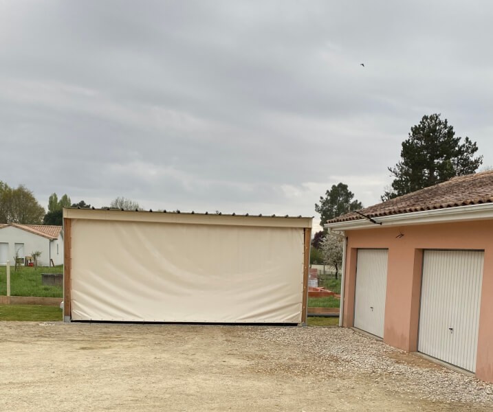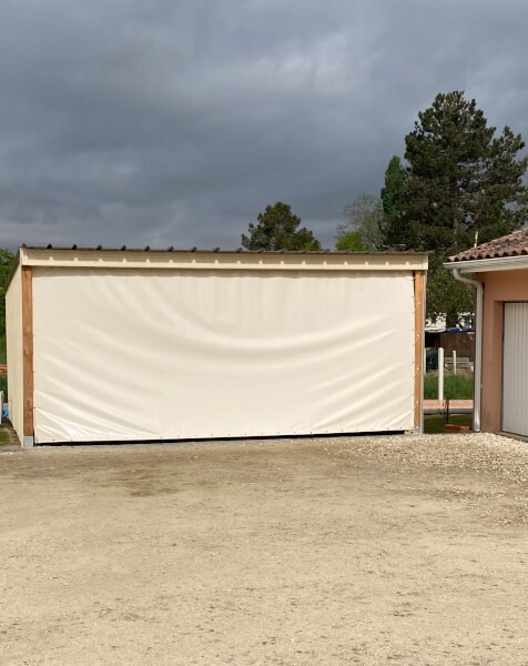 Une bâche bien tendue, en plus d'assurer un rendu esthétique idéal, permet également une évacuation optimale de l'eau. À cette fin, nous conseillons de déduire 8 centimètres de vos cotes entre points d'accroche afin d'obtenir cet effet bien tendu.